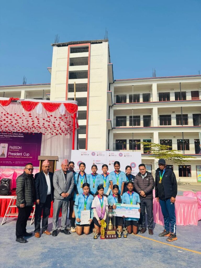 सुन्दरहरैंचा – सुन्दरहरैंचा नगरपालिका वडा -८ सलकपुरमा रहेको ब्राइट फ्युचर सेकण्डरी स्कूलकी छात्राहरूको भलिबल टोलीले कोशी प्रदेश PABSON प्रेसिडेन्ट कप रनिङ शिल्ड भलिबल प्रतियोगिता २०८२ मा उत्कृष्ट प्रदर्शन गर्दै विजयी भएको छ। टोलीले संयम, समर्पण र उत्कृष्ट खेल कौशल प्रदर्शन गर्दै प्रतिस्पर्धीहरूलाई पछि पार्दै उपाधि हात पारेको हो।