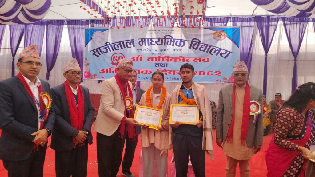 मोरङको सुन्दरहरैँचा–६ दुलारी स्थित साजीलाल माध्यमिक विद्यालयले आफ्नो ६०औँ वार्षिकोत्सव तथा अभिभावक दिवसलाई पाँच दिनसम्म विविध शैक्षिक, खेलकुद र सांस्कृतिक कार्यक्रममार्फत भव्य उत्सवका रूपमा मनाएको छ। छ दशक लामो शैक्षिक यात्रालाई स्मरण गर्दै आयोजना गरिएको कार्यक्रममा विद्यालय, अभिभावक, पूर्व विद्यार्थी र समुदायबीचको सम्बन्ध अझ सुदृढ बनेको देखिन्थ्यो।