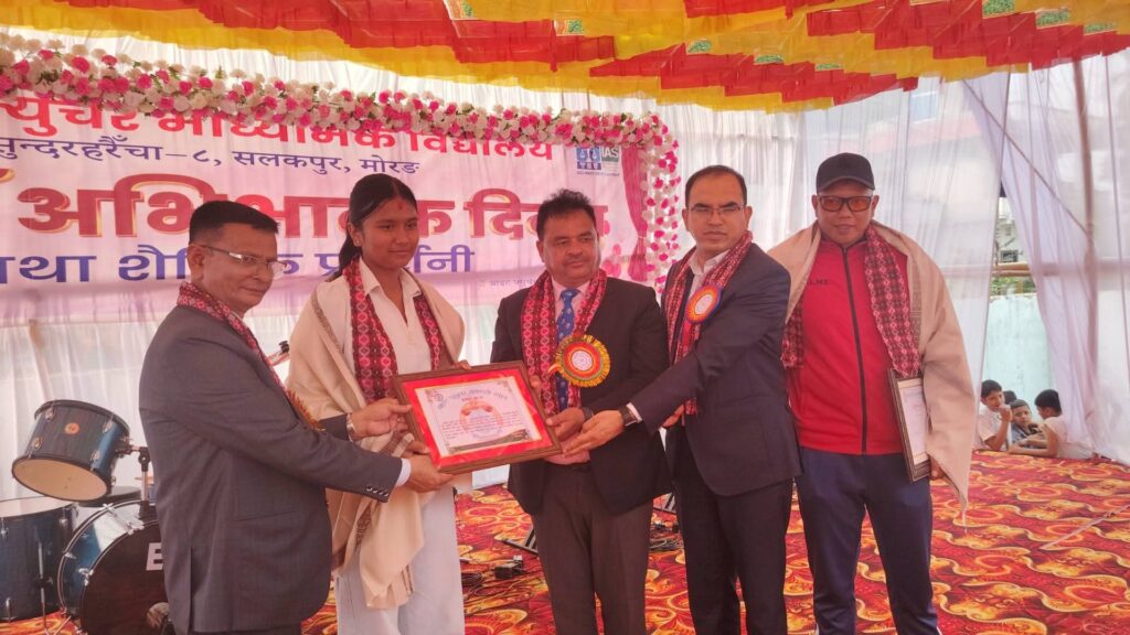 विद्यालयकी शिक्षिका कविता पाँचकोटीले सञ्चालन गरेको कार्यक्रममा विभिन्न विधामा उत्कृष्ट प्रदर्शन गर्ने विद्यार्थीहरूलाई पुरस्कार, मेडल तथा ट्रफी प्रदान गरी सम्मान गरिएको थियो।