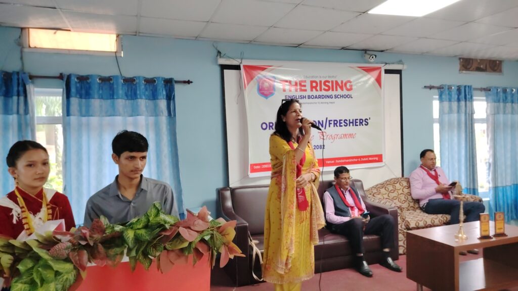 मोरङको सुन्दरहरैंचा नगरपालिका–१० मा रहेको द राइजिङ इङ्लिस स्कुलले भव्य रुपमा अभिमुखीकरण तथा स्वागत कार्यक्रम सम्पन्न गरेको छ। कार्यक्रममा नयाँ भर्ना भएका विद्यार्थीलाई विशेष स्वागत गर्दै विद्यालय परिवारमा जिम्मेवार सदस्यका रूपमा आफूलाई ढाल्न प्रेरित गरिएको थियो।