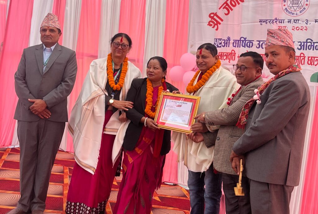 मोरङको सुन्दरहरैचा–३ स्थित जनता माध्यमिक विद्यालय त्रिजुगाले आयोजना गरेको ५९औँ वार्षिक उत्सव तथा अभिभावक दिवसको अवसरमा पत्रकार शिव भट्टराई भोजपुरेलाई विशेष सम्मान गरिएको छ। पत्रकारिताको माध्यमबाट शिक्षा, सामाजिक चेतना र स्थानीय विकासका गतिविधिलाई निरन्तर उजागर गर्दै आएको योगदानको उच्च मूल्याङ्कन गर्दै उहाँलाई दोसल्ला ओढाएर तथा सम्मान पत्र सहित सम्मान गरिएको हो।
